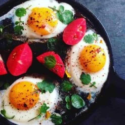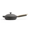 Always ensure there is enough oil or natural fat (e.g. butter, lard) in the pan when using, then deglaze and wipe with a paper towel after use. If the pan needs washing, ensure it is completely dried and lightly-oiled before storing. Follow these steps and your pan will build up a dark patina that increases the pan’s non-stick properties. The more you use it, the more non-stick it will become.