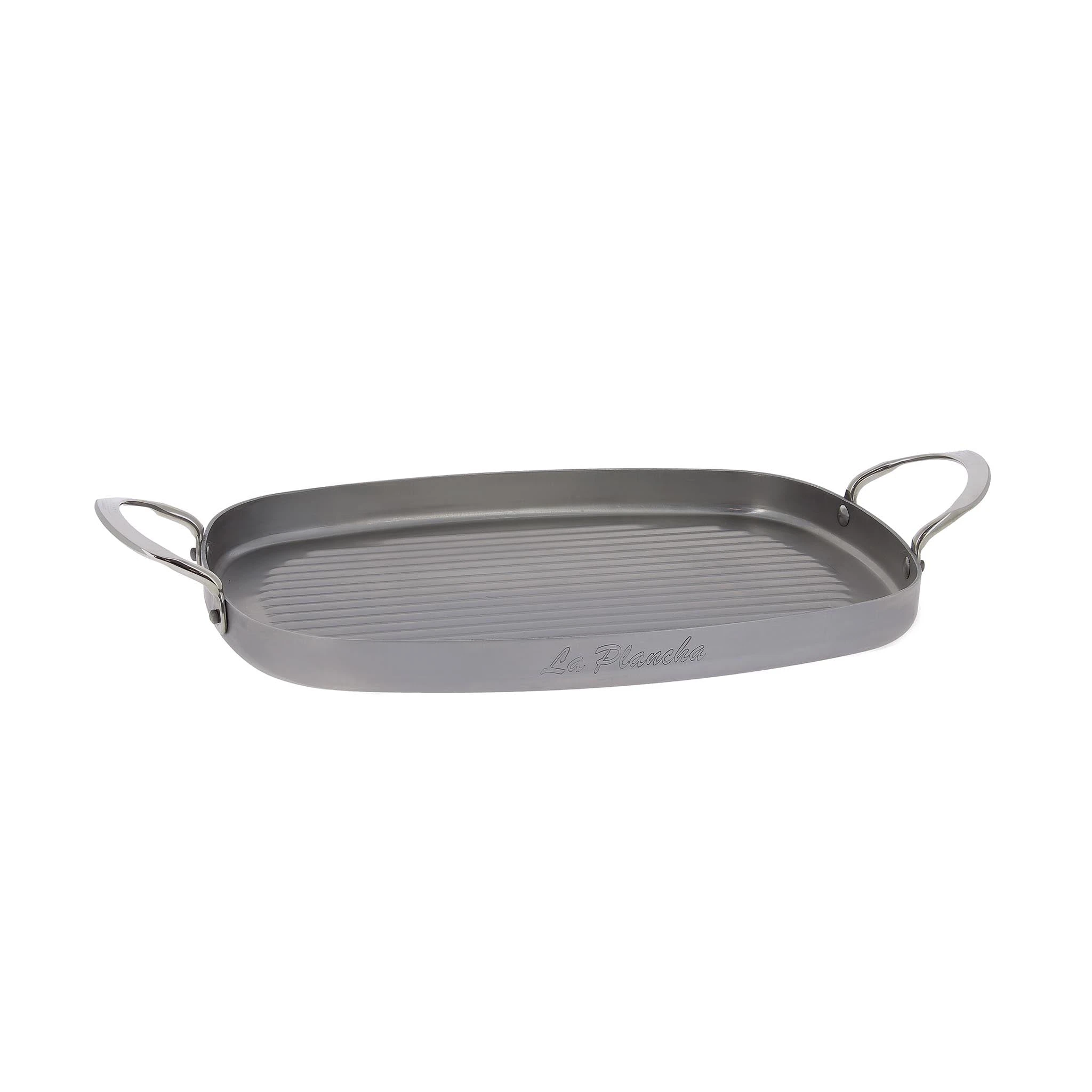 The De Buyer Mineral B ‘Plancha’ grill pan is ideal for cooking al fresco. The large, oval-shaped griddle pan is great for cooking scallops, steaks, prawns and more over hot coals.