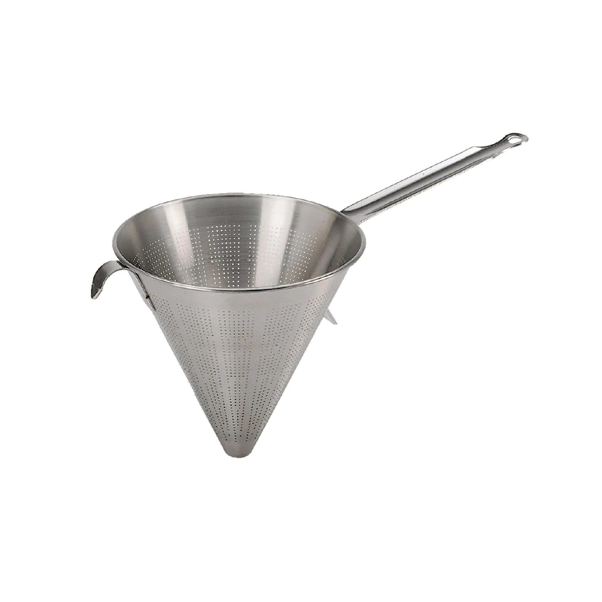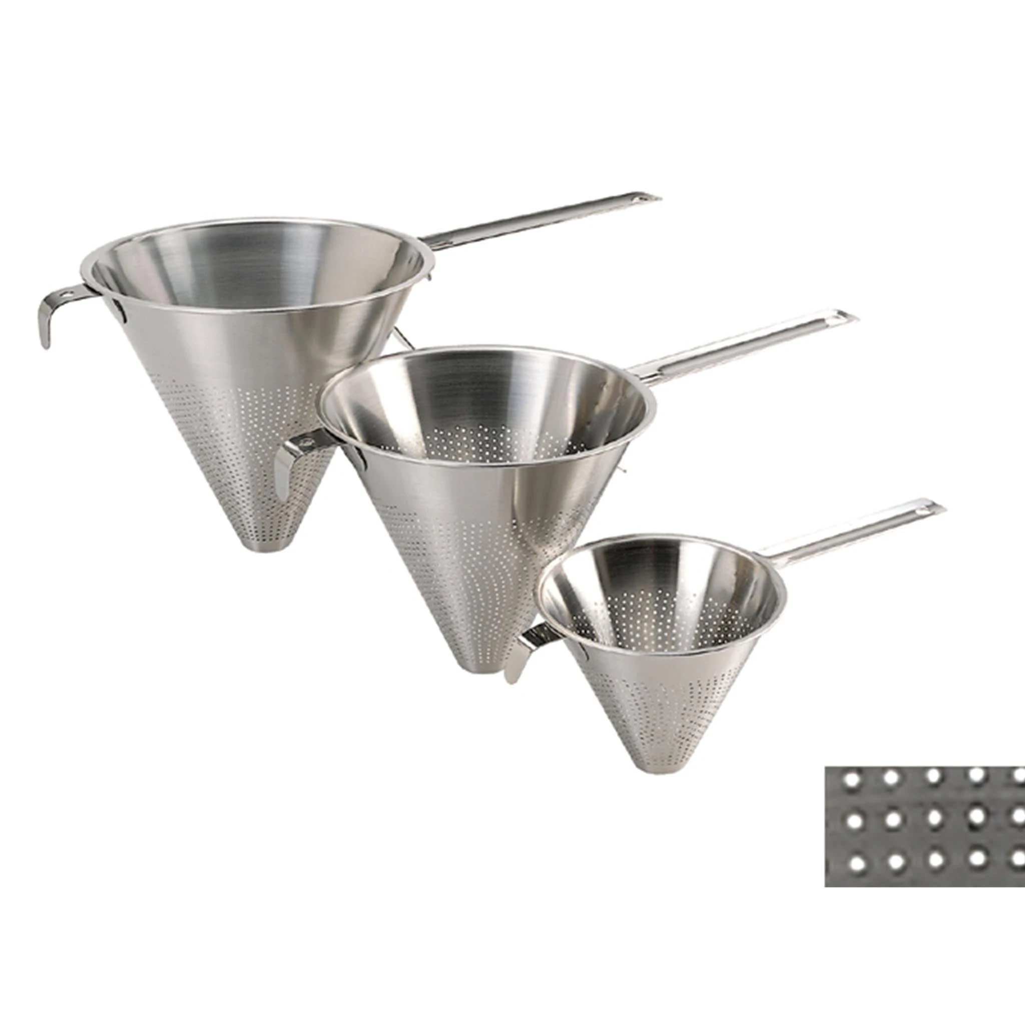 The standard 1.5mm perforations are suitable for straining most preparations. You can line the chinois with muslin for pip-free jams and jellies, or for clarifying consommés.
