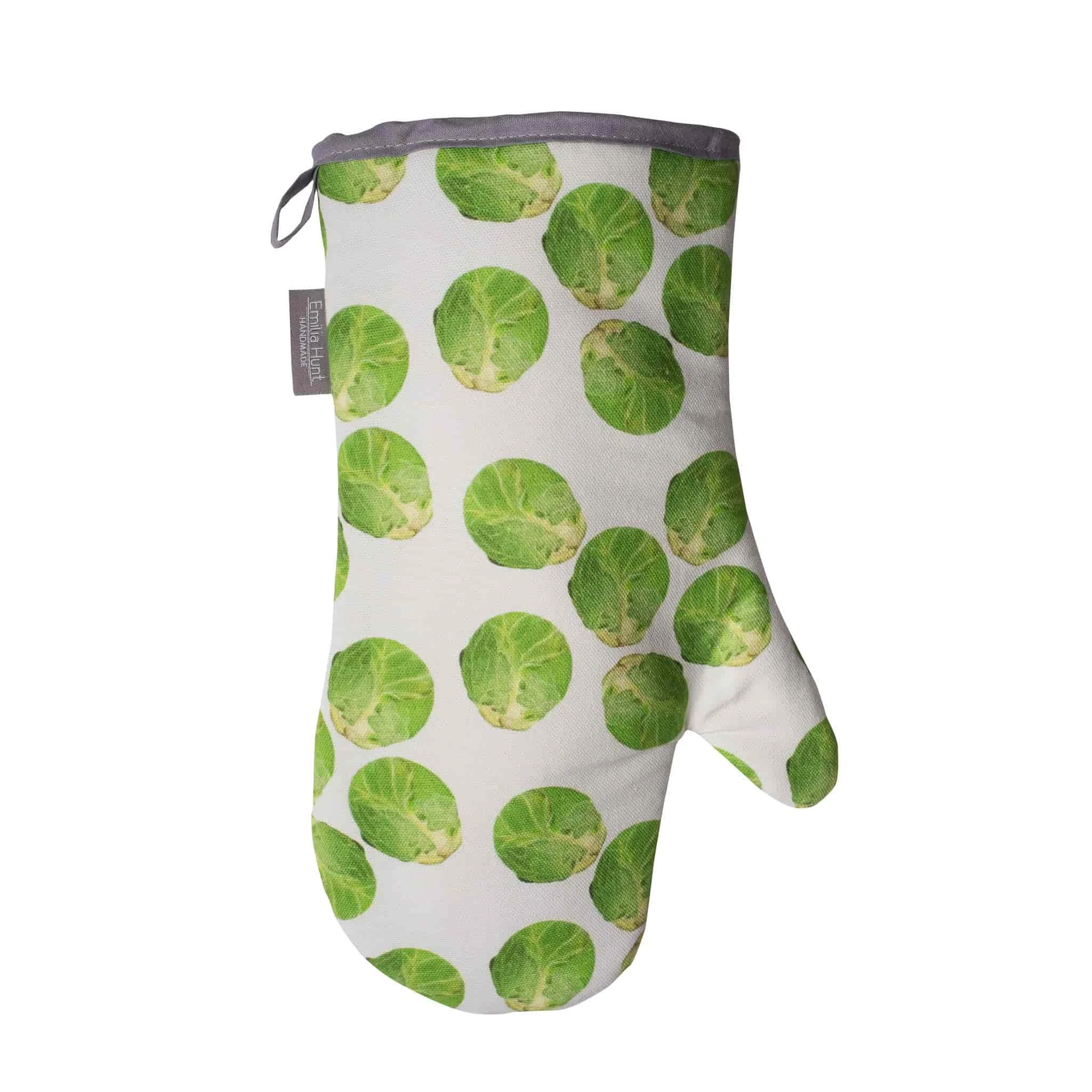 Emilia Hunt’s pink sprouts single oven mitt adds a delightful design to this kitchen essential. This hand-drawn illustration depicts green sprouts on a clean wite background. Celebrate this classic festive vegetable all year round! This charming pattern will bring a smile to your face every time you walk into the kitchen.Â