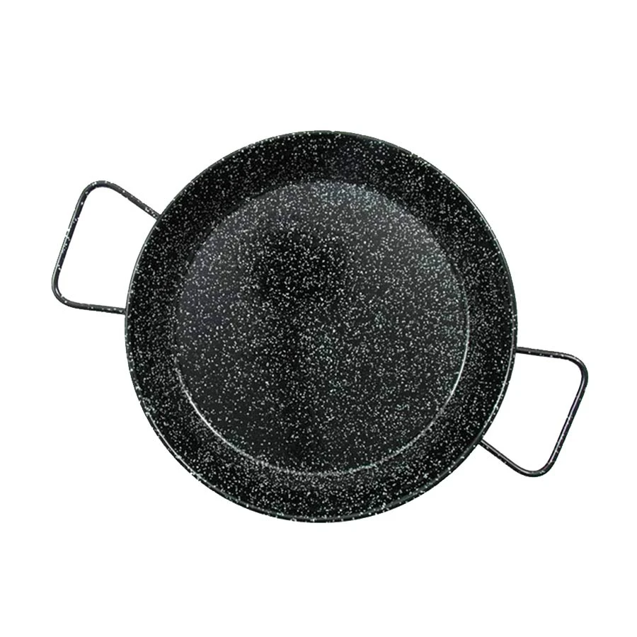 This paella pan is enamelled with a coating of vitreo-ceramic, protecting the pan from rust. The enamel also prevents food sticking – try to avoid using sharp utensils to preserve the pan’s non-stick qualities.Â