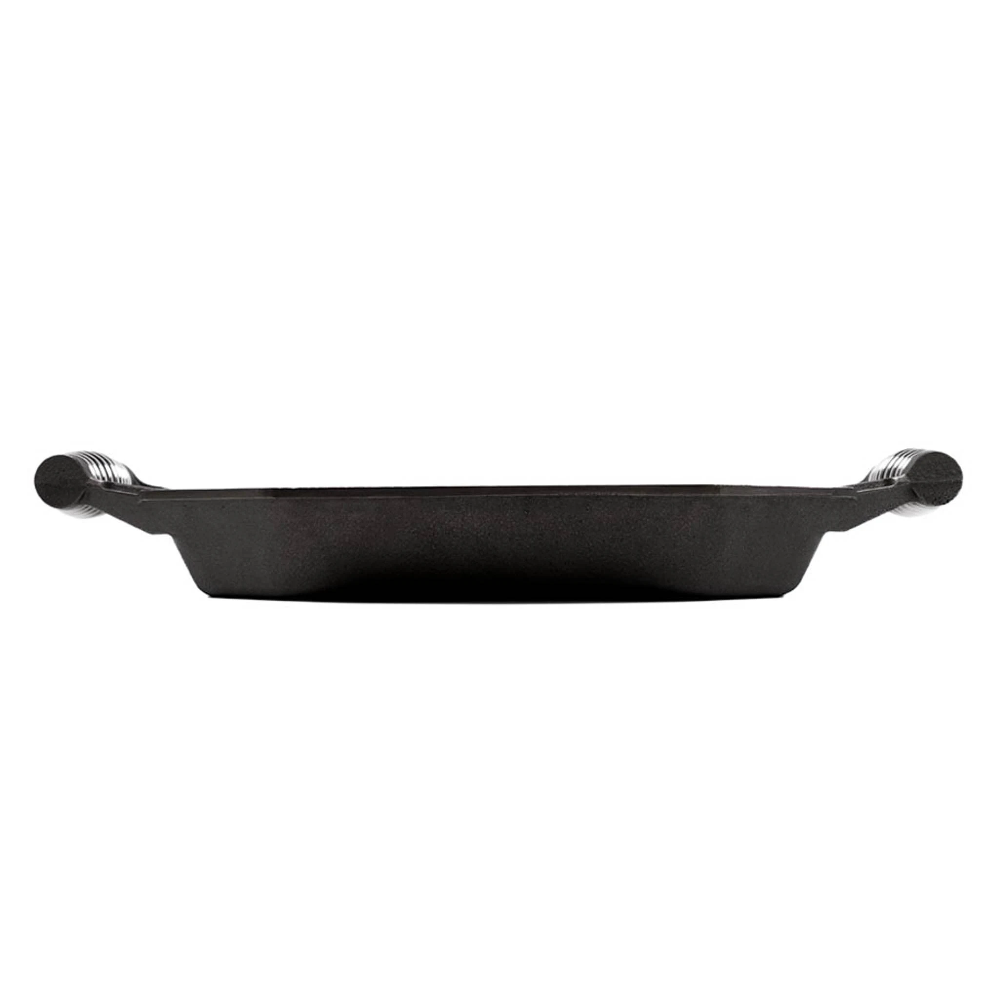 This cast iron grill pan can be used in your oven, barbecue and on all hob types, including induction. It’s pre-seasoned with flaxseed oil, so it’s ready to use straight out of the box.
