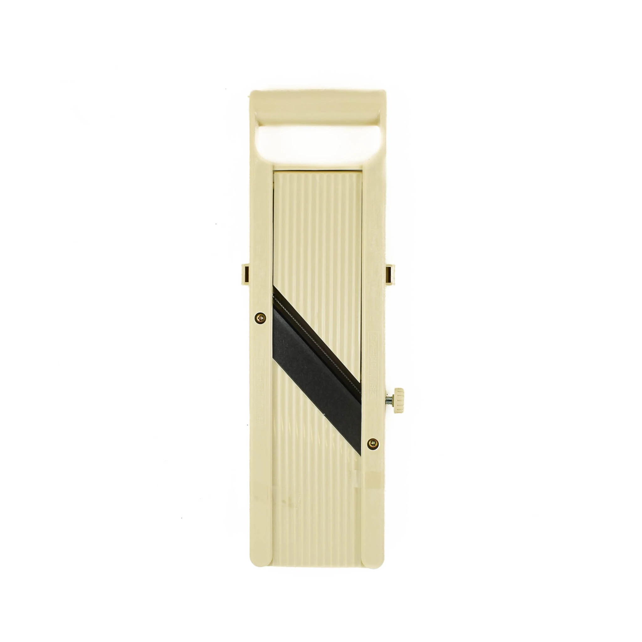 This Japanese mandoline makes fine cutting of fruits and vegetables easy. Achieve any dimension or style of sliced vegetables with this easily adjustable Mandoline. It is efficient and precise in both professional and home kitchens.Â