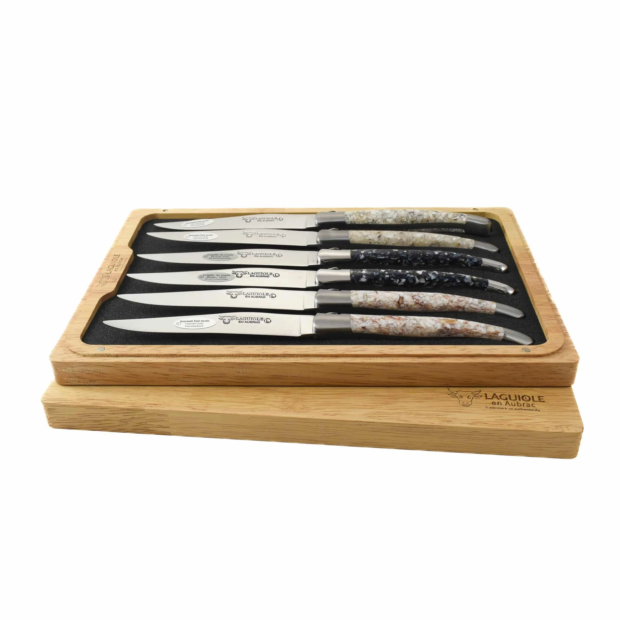 The Laguiole en Aubrac set of six shell steak knives will instantly elevate your dinner table. The smooth steel blades glide effortlessly through rib eye, fillet and Chateaubriand.
