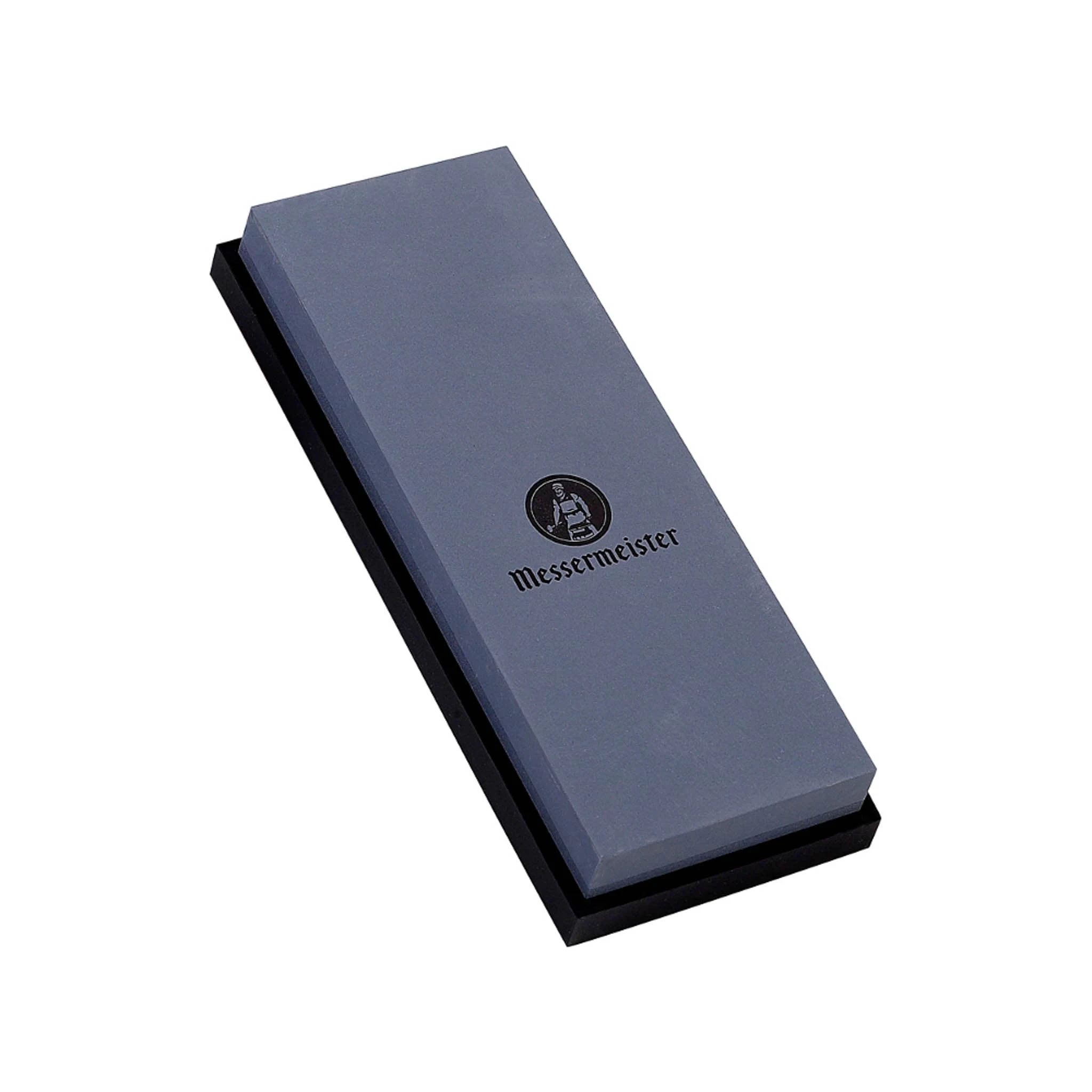 The Messermeister restoration combination whetstone has a silicone base to guarantee secure, no-slip sharpening.Â