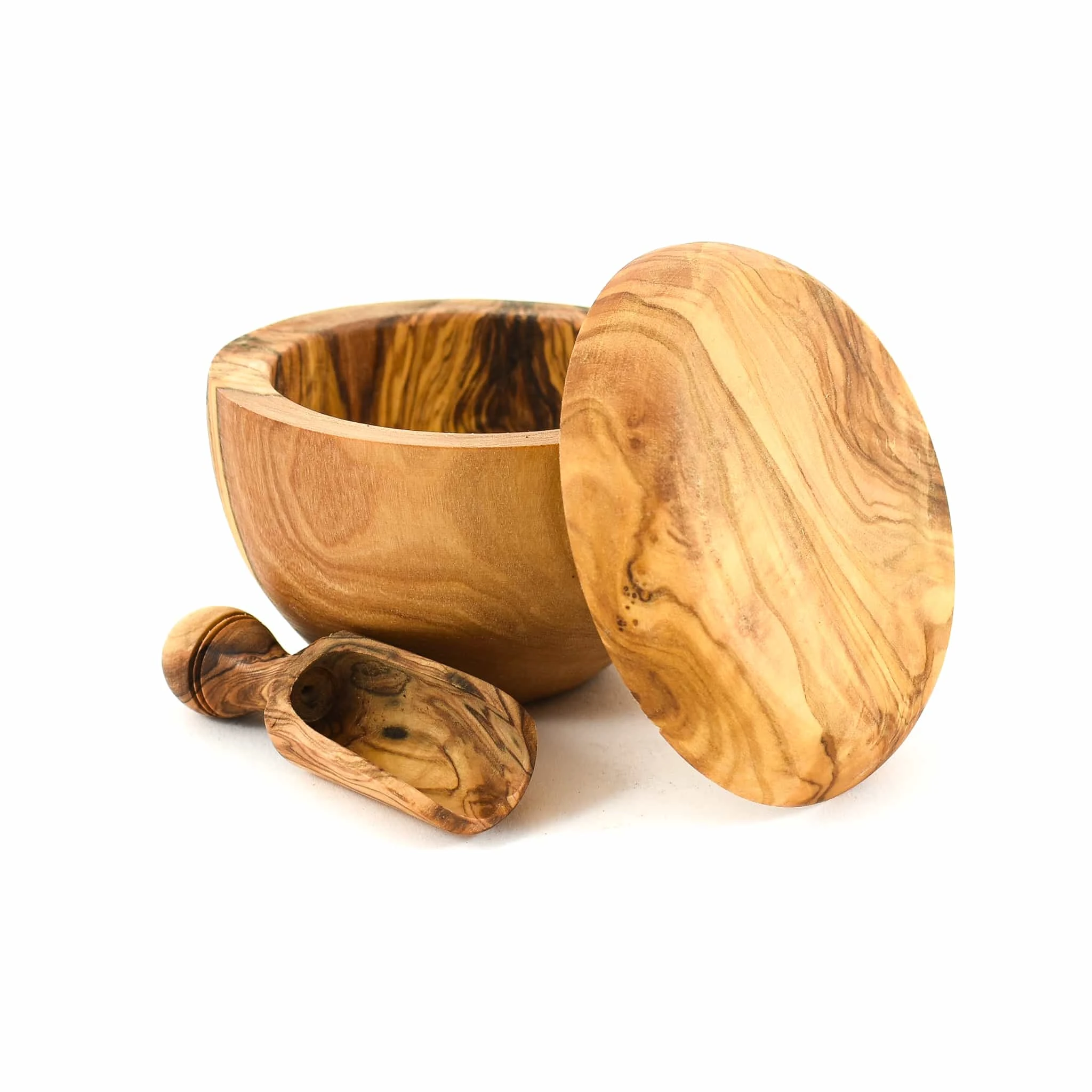 The olive wood salt pot and scoop set is a lovely addition to any kitchen. Fill with table salt, sea salt or rock salt and keep on the kitchen counter. Use the scoop to season as you cook, without getting salt stuck to your fingers!