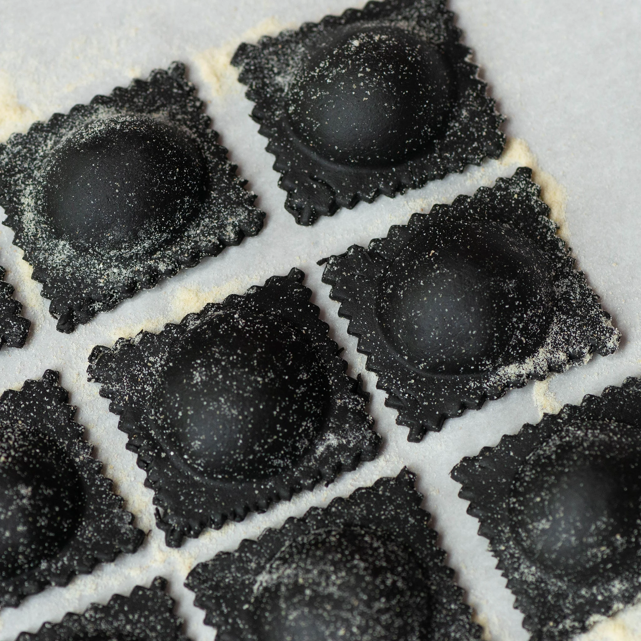 The ravioli tray and rolling pin set makes 12 ravioli at a time, each 52x52mm. The ravioli tray is non-stick, easy to clean and an efficient way to make perfect batches of filled pasta.